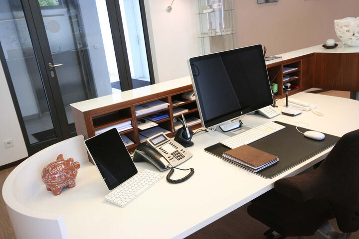 Wenn man die Gelegenheit zu einem kompletten PRAXIS- & LADENBAU bekommt, dann kann man zeigen, was man als Schreinereibetrieb drauf hat. Zeigen, auf welches Netzwerk man im Hintergrund zählen kann. Zeigen, wie mit Planung, Terminen, Ideen und Flexibilität umgegangen wird. Alles richtig gemacht hat man, wenn es den Patienten ein Lächeln in Gesicht zaubert, wenn Sie am Empfang stehen und sich wohl fühlen.